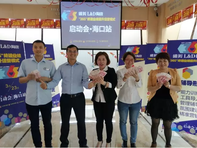 此次海口唯美L&D陶瓷“365項目”不單只做一個店,而是海口萬佳店與喜盈門店面雙店同時啟動,成員分成三組同時PK,采取店店PK、組組PK。
